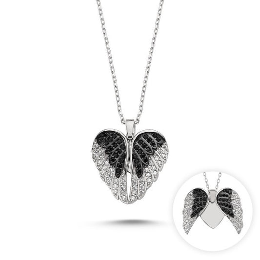 Atsiveriantis pakabukas su grandinėle "Wings & Heart"