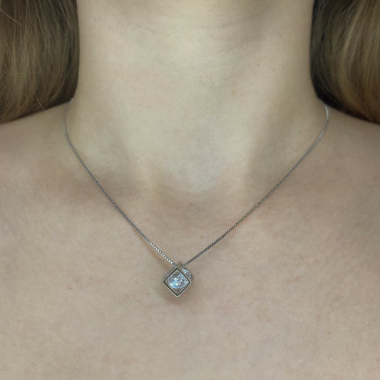 Sidabrinis rodžiuotas pakabukas su cirkoniu ir grandinėle