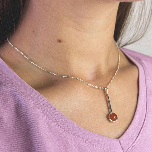 Sidabrinis pakabukas su karneolio akmeniu ir grandinėle