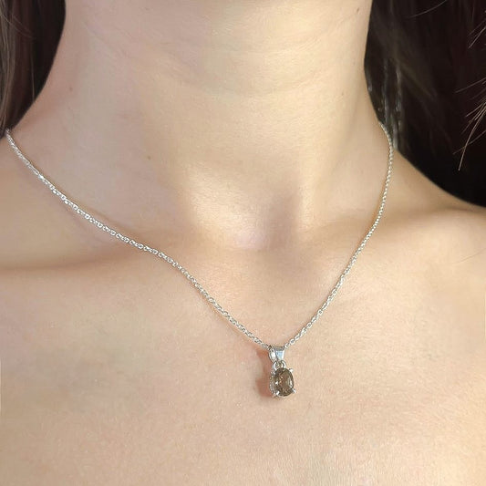 Sidabrinis pakabukas su ovaliu dūminiu kvarcu ir grandinėle