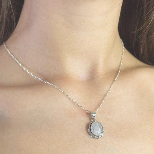 Sidabrinis pakabukas su mėnulio akmeniu ir grandinėle