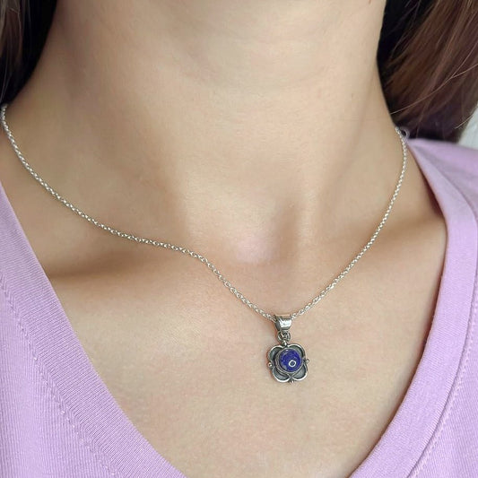 Oksiduoto sidabro pakabukas "Gėlytė" su lazurito akmeniu ir grandinėle