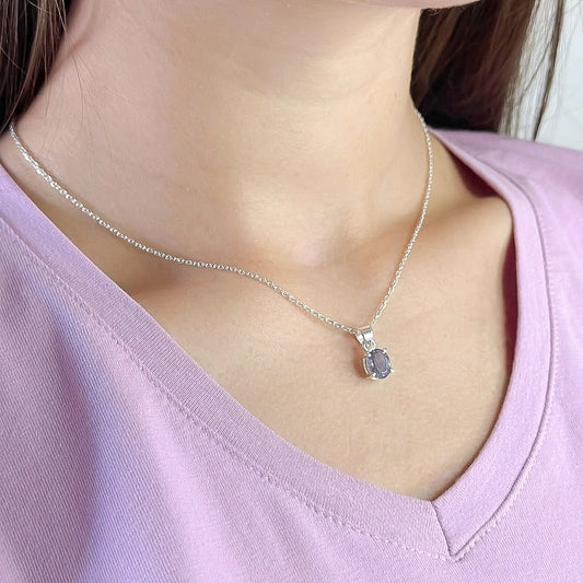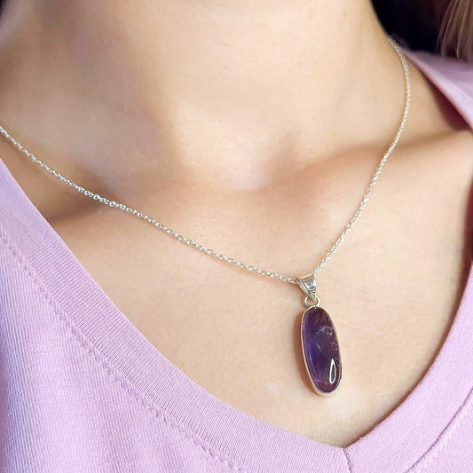 Sidabrinis pakabukas su ametisto akmeniu ir grandinėle