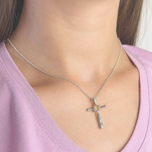Sidabrinis kryželis su citrino akmeniu ir grandinėle