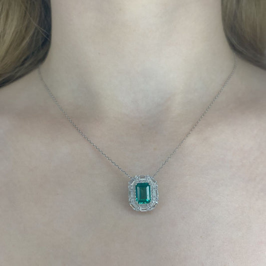 Sidabrinis rodžiuotas kolje su smaragdo spalvos cirkoniu ir grandinėle