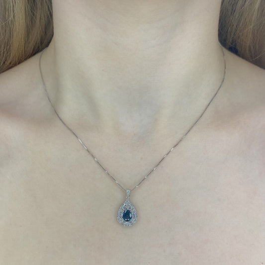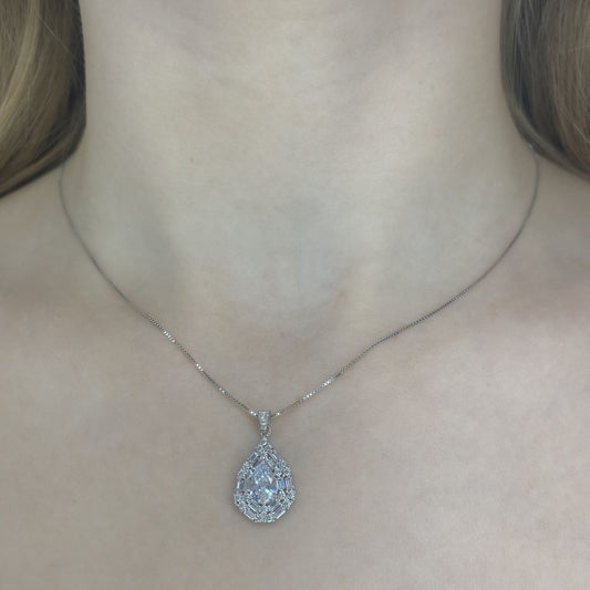 Sidabrinis rodžiuotas lašo formos pakabukas su cirkoniais ir grandinėle