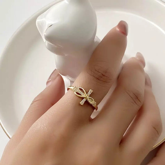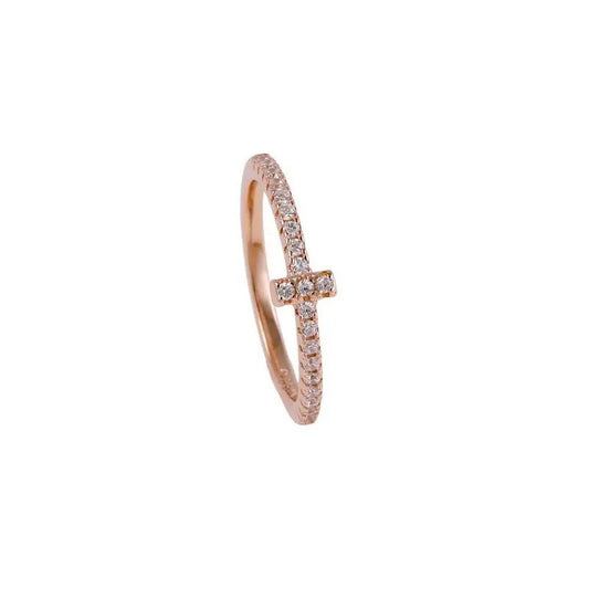 Sidabrinis paauksuotas žiedas "Kryželis" su cirkoniais