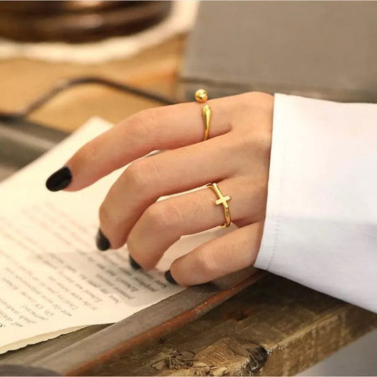 Sidabrinis auksuotas reguliuojamo dydžio žiedas su kryželiu