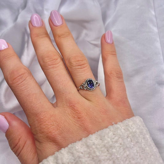 IšparduotaSidabrinis žiedas su ovaliu ametistu