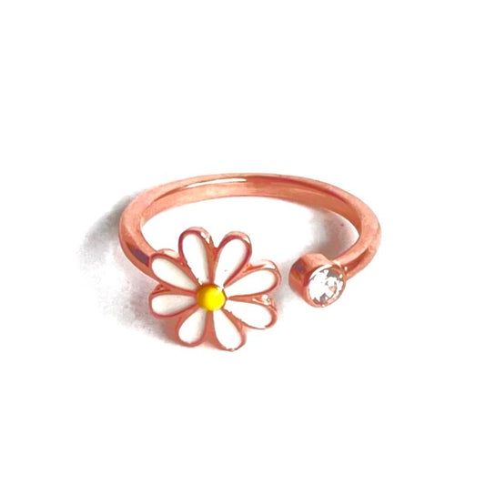 Sidabrinis paauksuotas reguliuojamo dydžio žiedas "Ramunė"