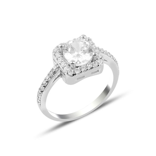 Sidabrinis rodžiuotas žiedas su stačiakampe cirkonio akute