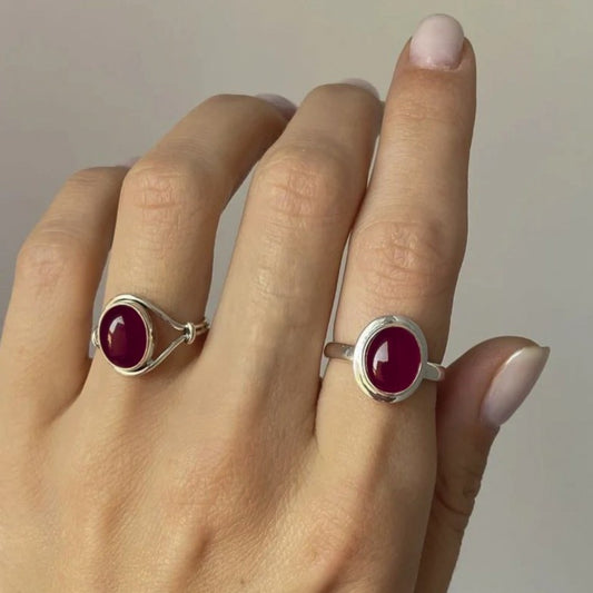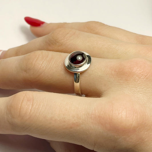 Sidabrinis žiedas su apvaliu granato akmeniu