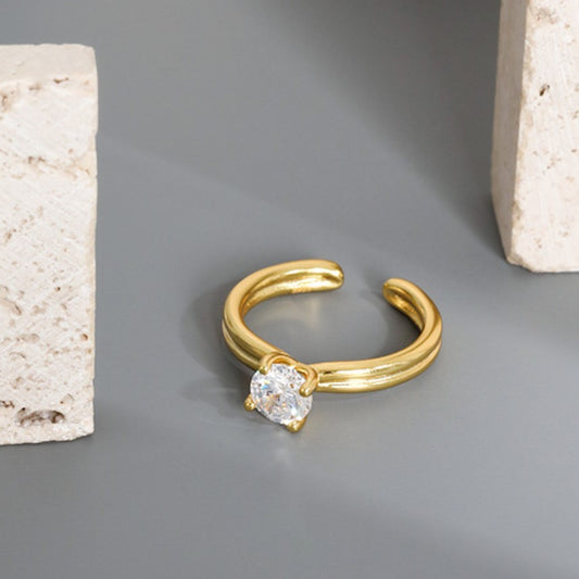 Sidabrinis auksuotas reg. dydžio žiedas su 0,6 cm cirkonio akute