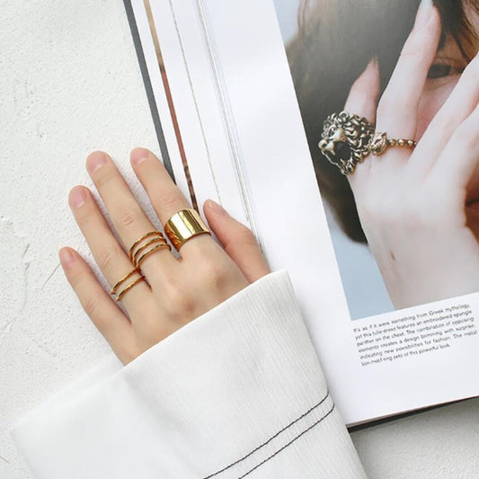 Sidabrinis auksuotas platus reguliuojamo dydžio žiedas