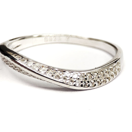 Sidabrinis rodžiuotas žiedas su bangele ir cirkoniais