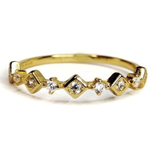Sidabrinis paauksuotas 3mm pločio žiedas su pailgais cirkoniais