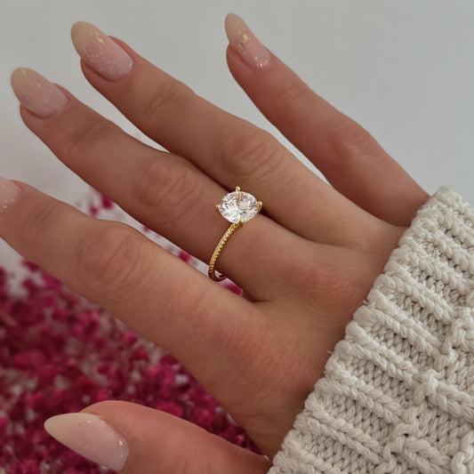 Sidabrinis auksuotas žiedas su 9 mm cirkonio akute