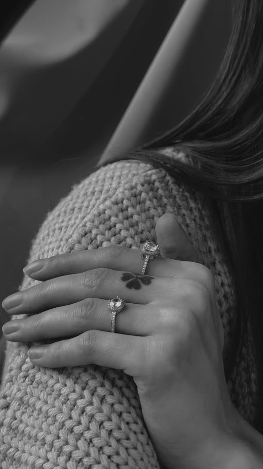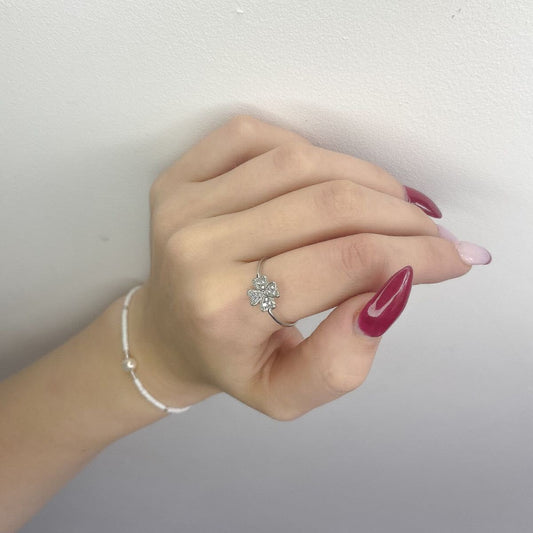 Sidabrinis rodžiuotas žiedas "Keturlapis dobilas" su cirkoniais