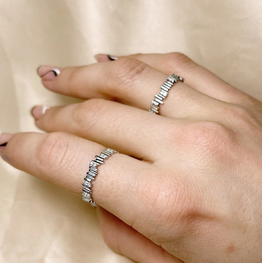 Dvigubas sujungtas žiedas su 3 cirkonių eilėmis
