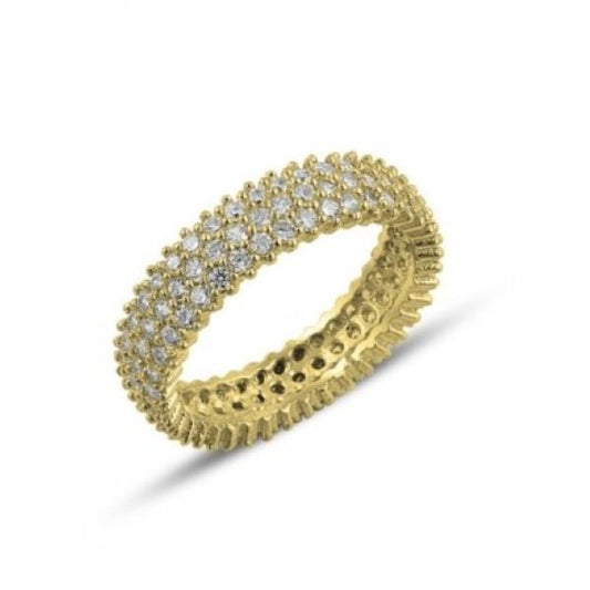 Sidabrinis auksuotas žiedas su 3 eilėmis cirkonių