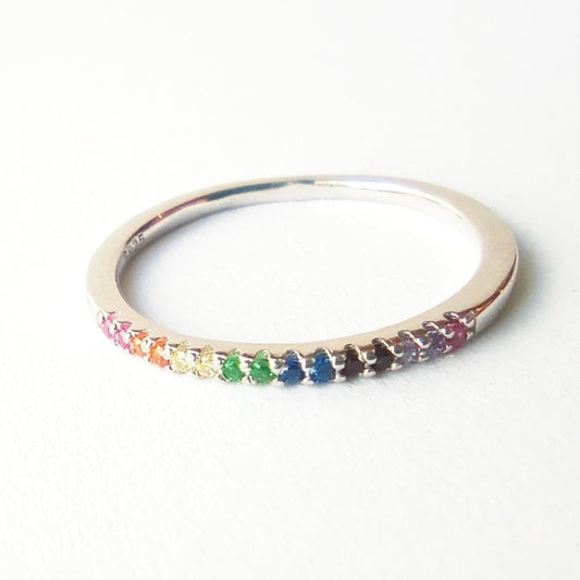 1mm ¦ rodžiuotas žiedelis su spalvotais cirkoniais