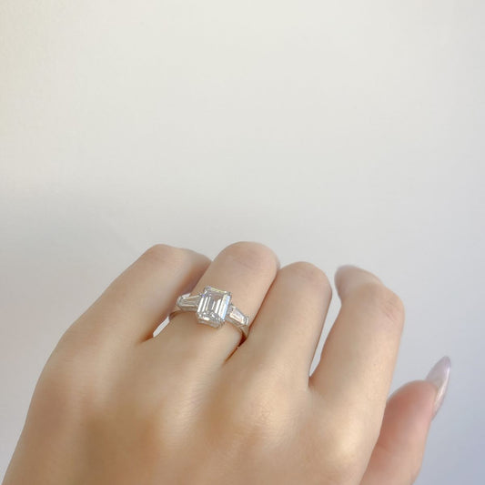 Sidabrinis paauksuotas žiedas su stačiakampiu cirkoniu