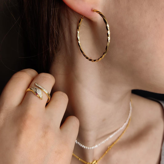 Sidabrinis auksuotas reguliuojamo dydžio žiedas gyvatė