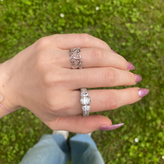 Sidabrinis rodžiuotas žiedas su cirkoniais