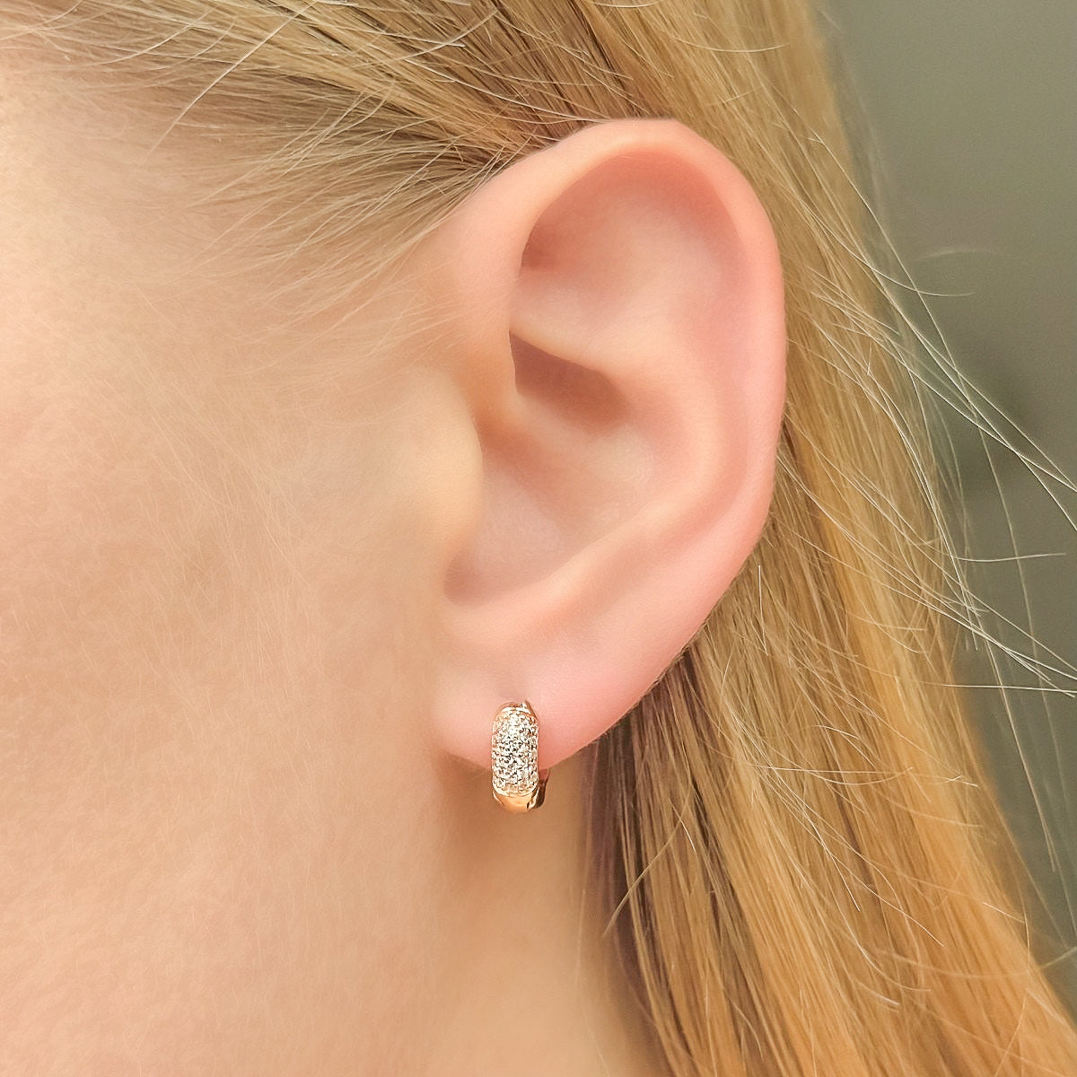 Auskaru poroje inkrustuoti cirkonio kristalai.