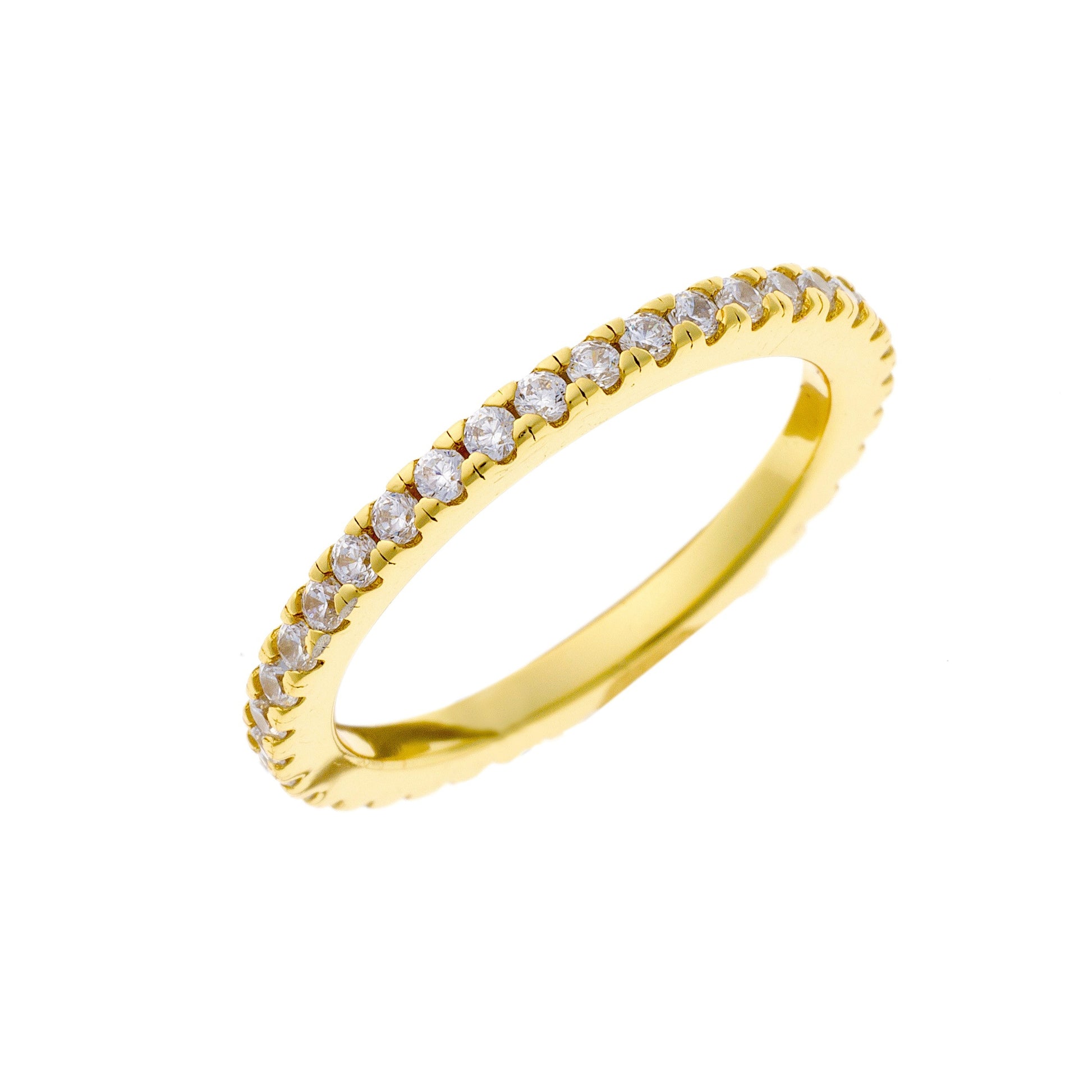 1,5mm storio sidabrinis auksuotas žiedas su cirkoniais