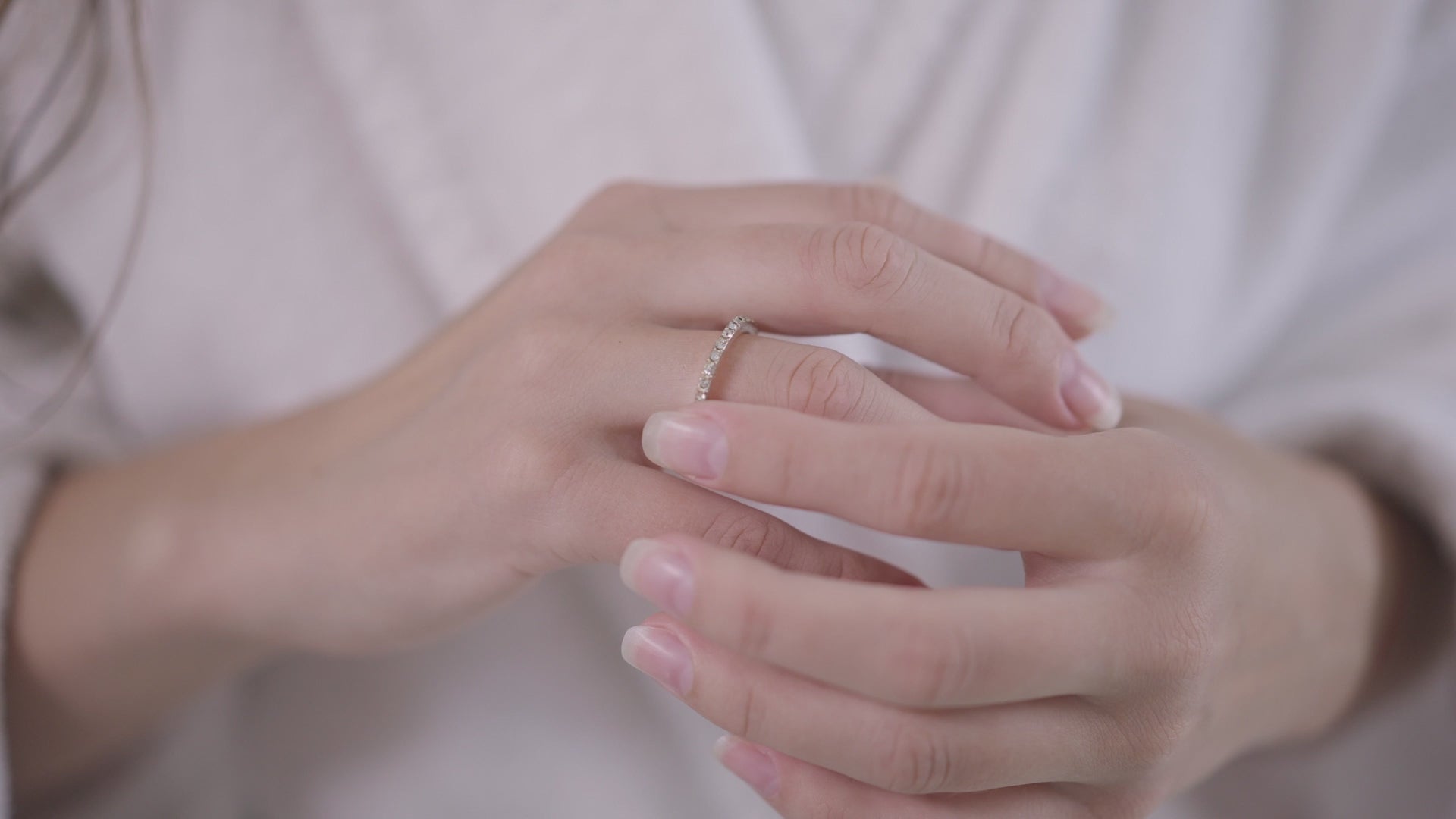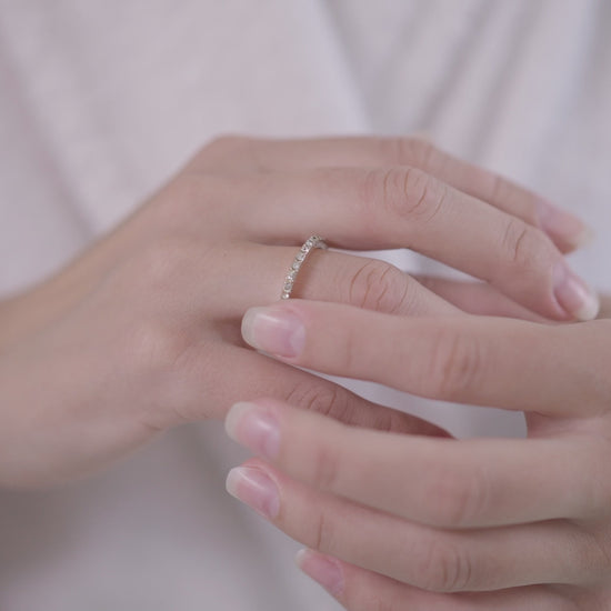 Cirkoniai inkrustuoti aplink visą žiedą.