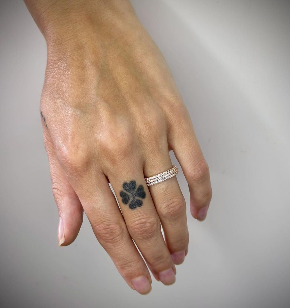 Cirkonio kristalai inkrustuoti aplink visą žiedą.