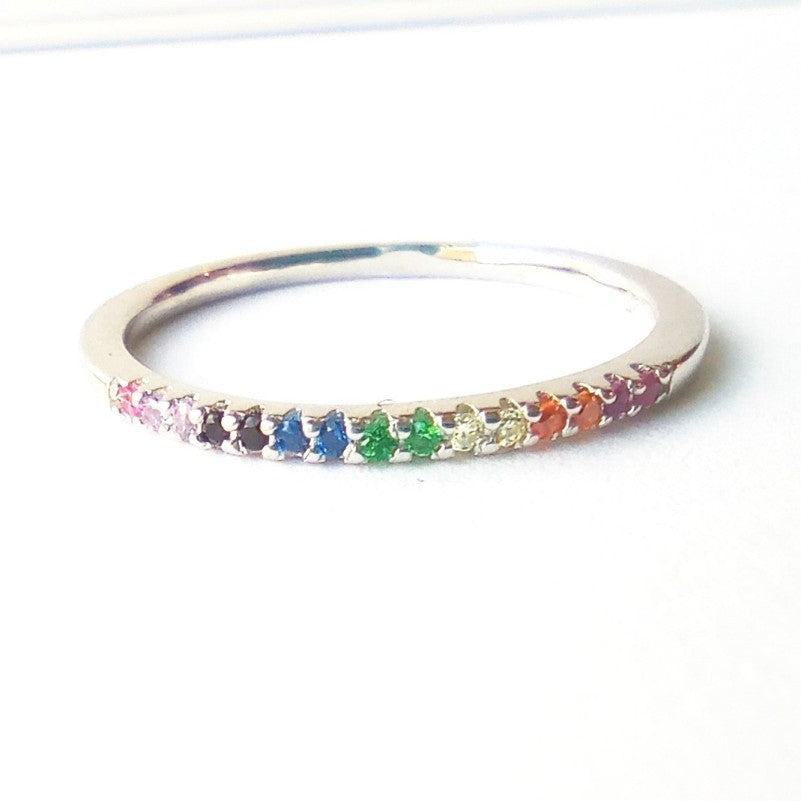 1mm ¦ rodžiuotas žiedelis su spalvotais cirkoniais