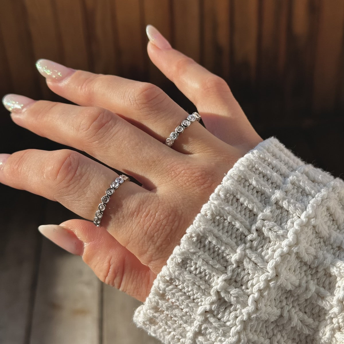 3mm sidabrinis žiedelis su apvaliomis cirkonio akutėmis