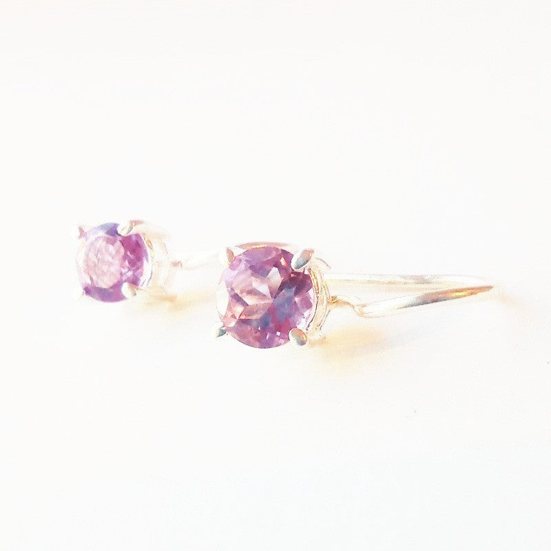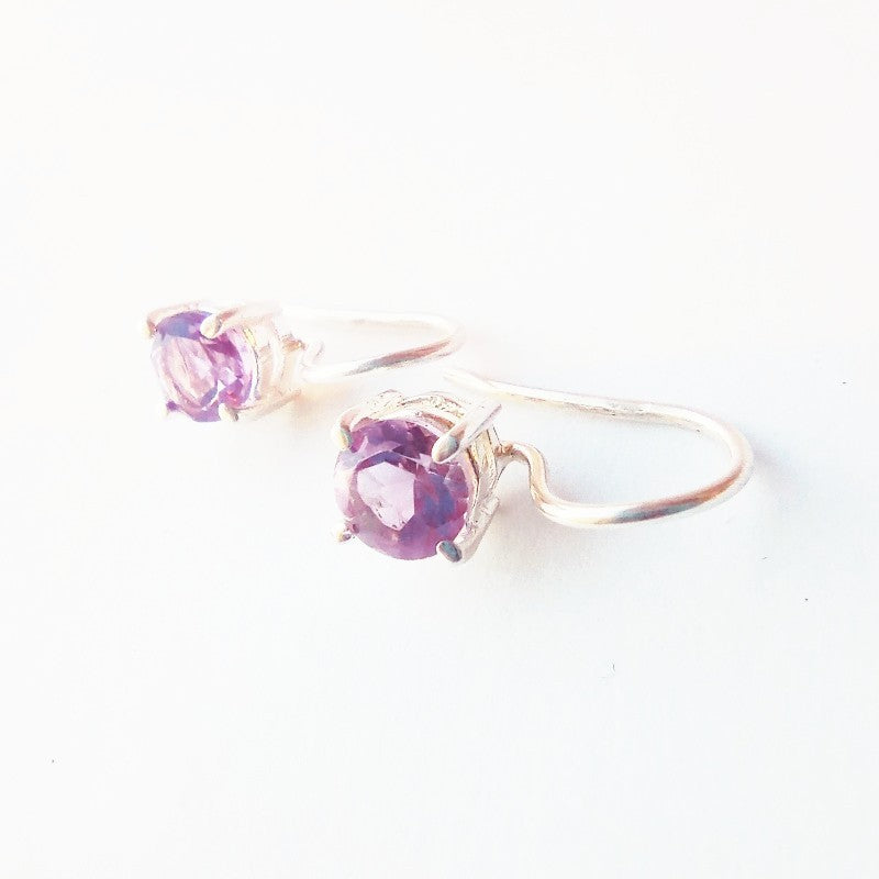 Sidabriniai auskarai su 6 mm ametisto akmeniu.