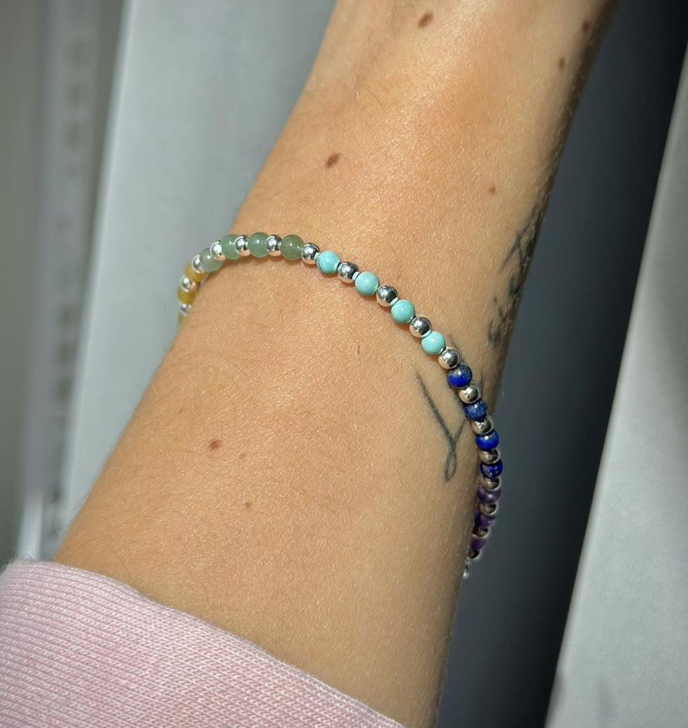 Apyrankė su 7 rūšių skirtingais akmenukais ir sidabro karoliukais