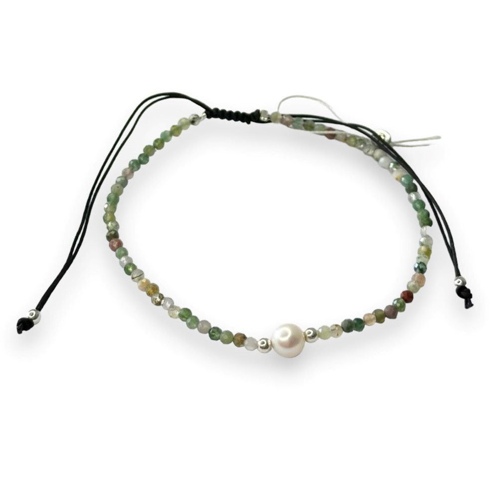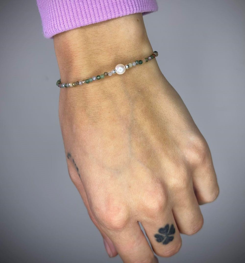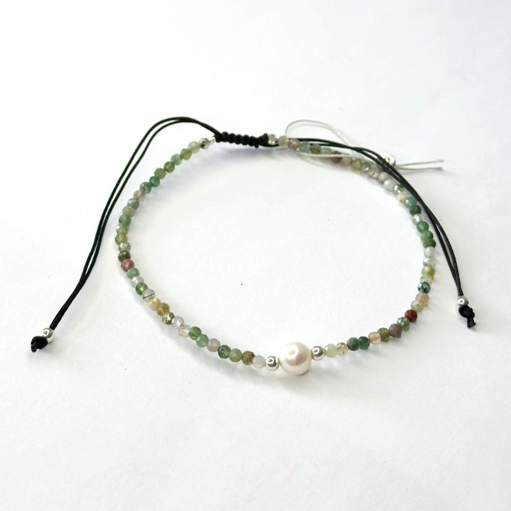 Apyrankė su žaliojo jaspio akmenukais ir tikru perlu