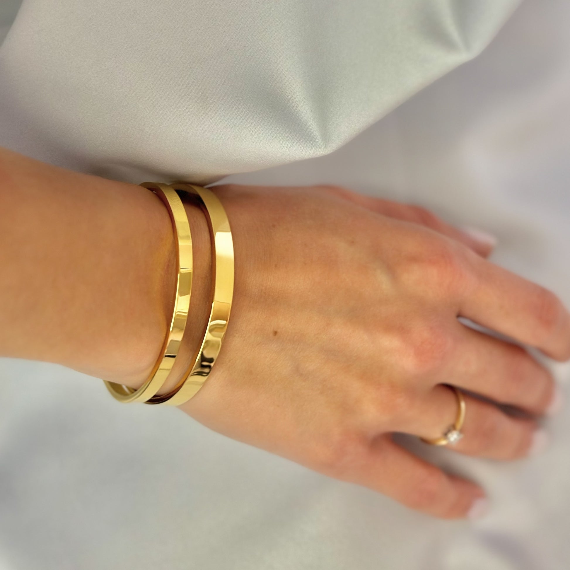 Minimalistinė auksu padengta apyrankė, kuri subtiliai papildo tiek kasdienį, tiek šventinį įvaizdį.
