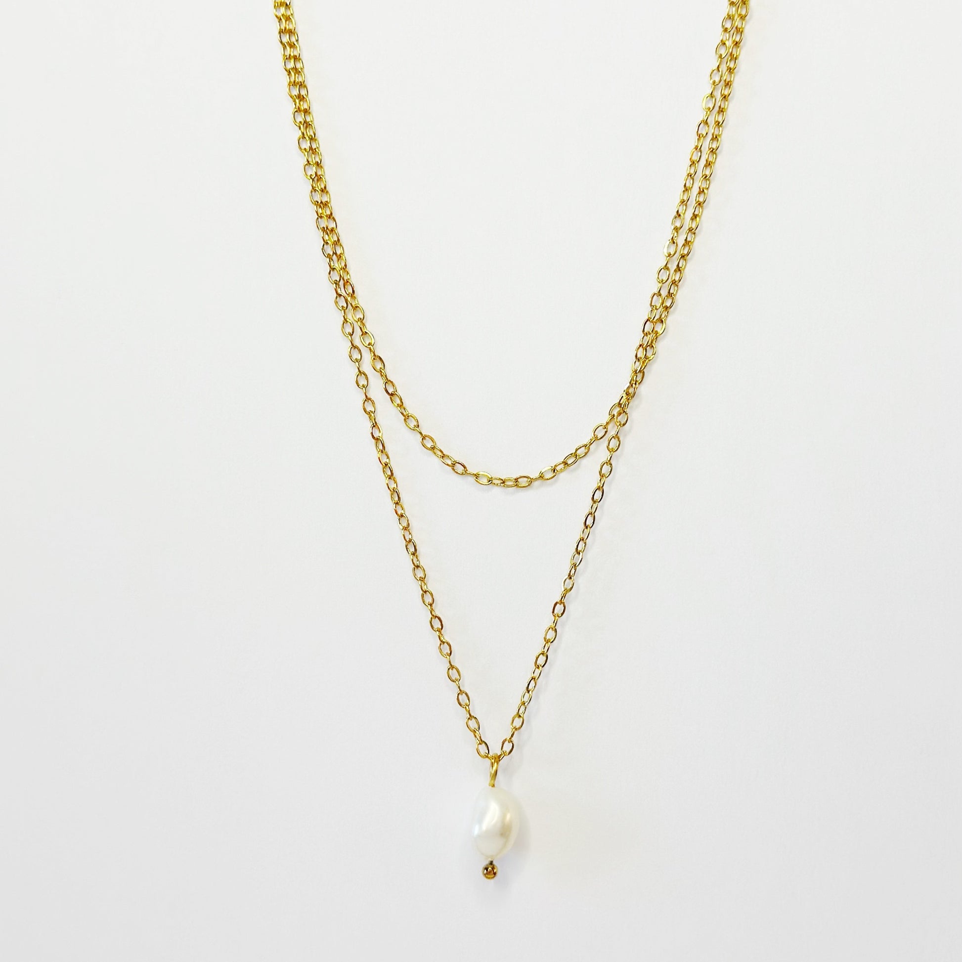 Auksuota dviguba grandinėlė su tikru perlu