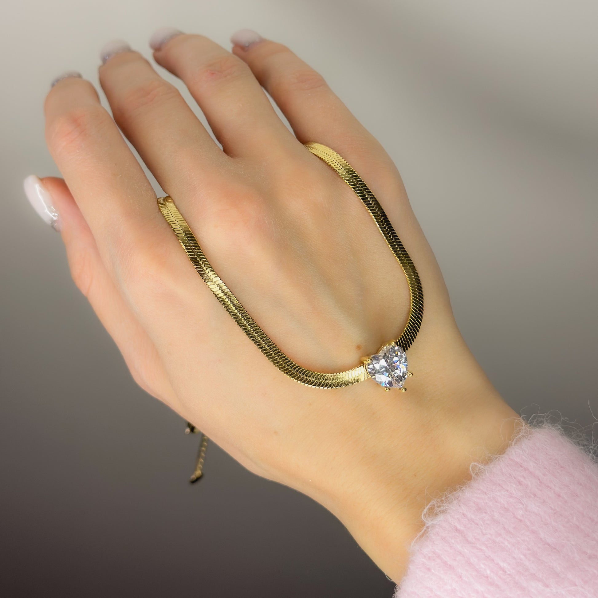 Auksuota grandinėlė "Flat chain" su cirkonio širdelė