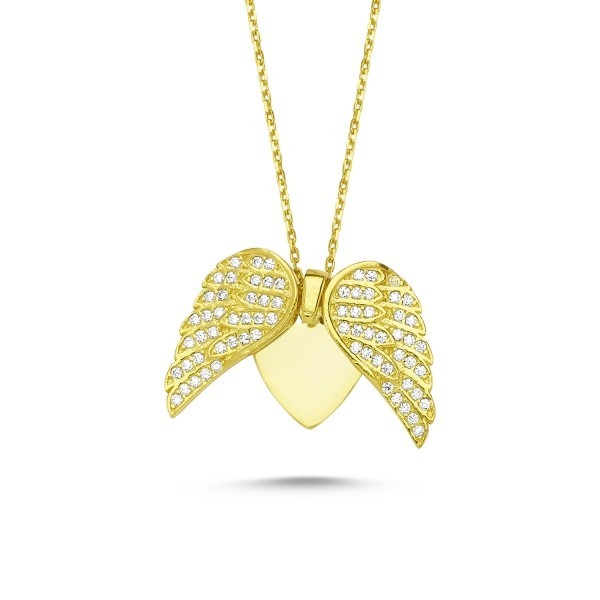 Auksuotas atsiveriantis pakabukas su grandinėle "Wings & Heart"