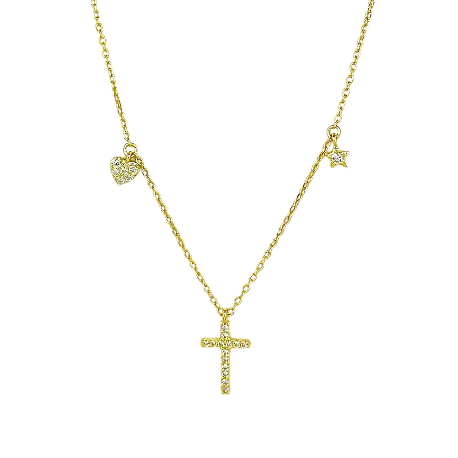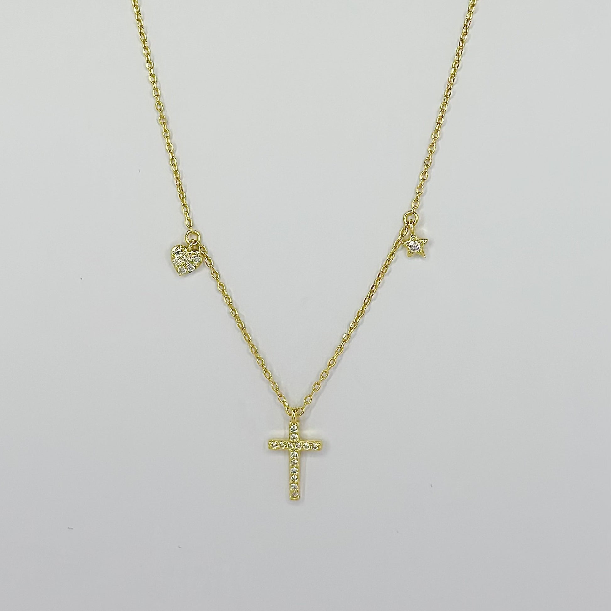 Sidabrinis auksuotas kryželis su cirkoniais ir grandinėle