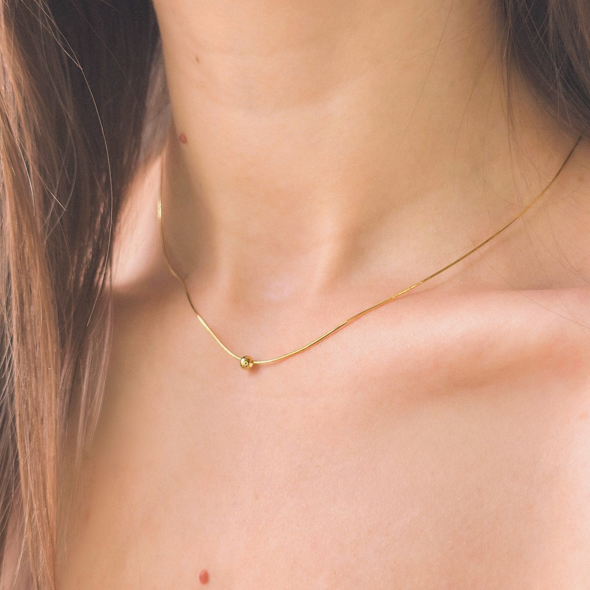 Sidabrinis auksuotas minimalistinio stiliaus burbuliukas su grandinėle