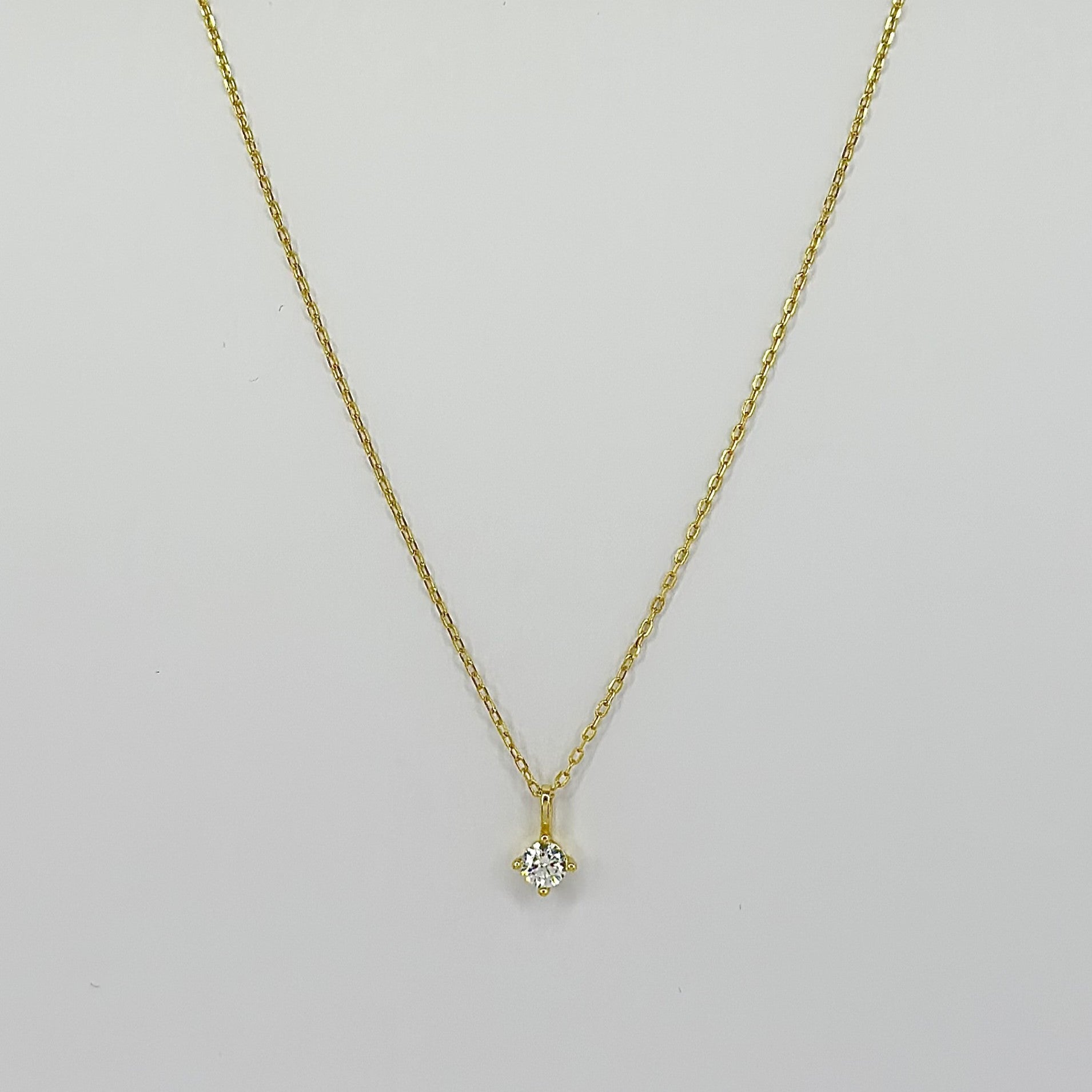 Sidabrinis auksuotas pakabukas su apvaliu cirkoniu ir grandinėle