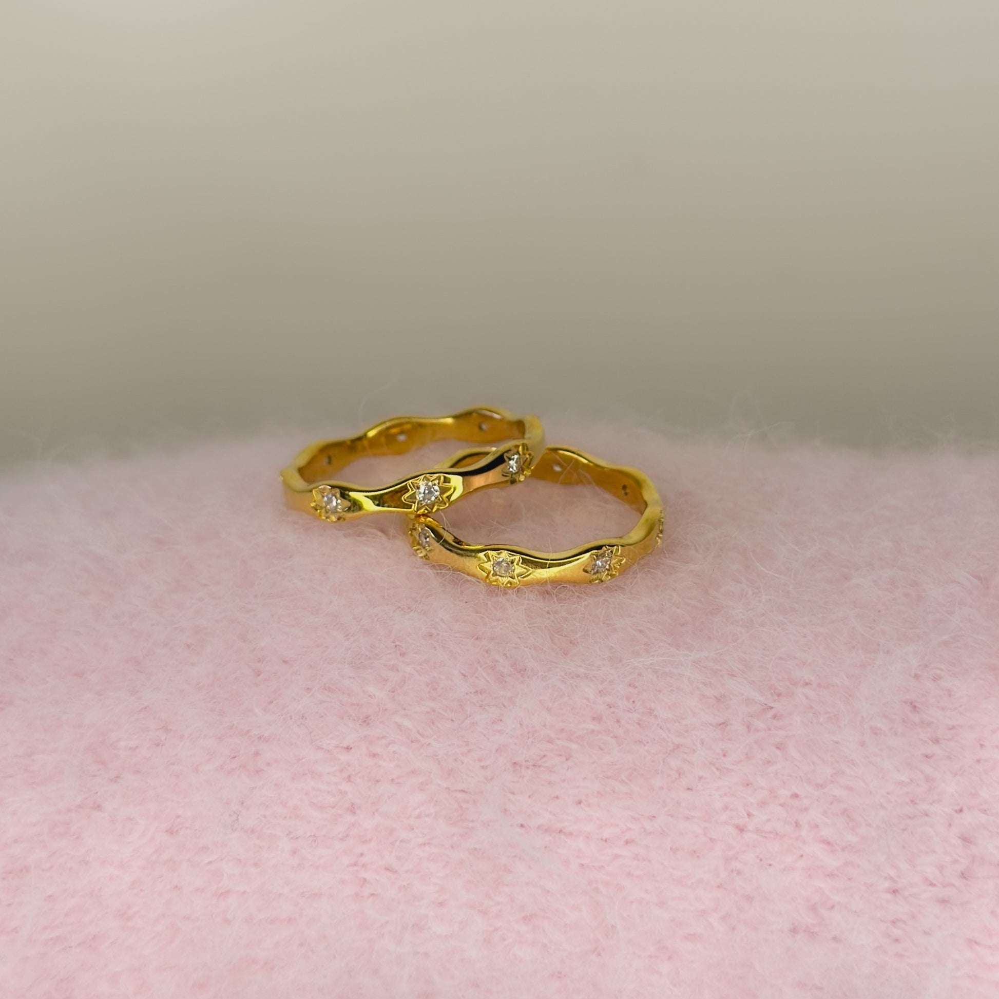 Auksuotas žiedas su žvaigždutėmis ir cirkoniu