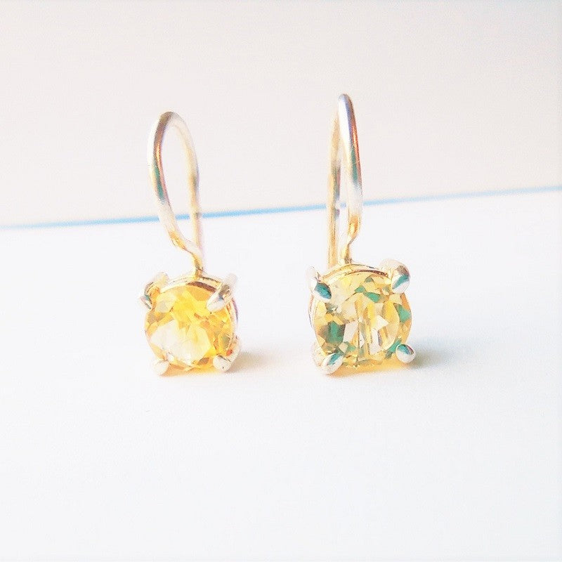 citrinas ¦ sidabriniai auskarai su apvaliu citrino akmeniu
