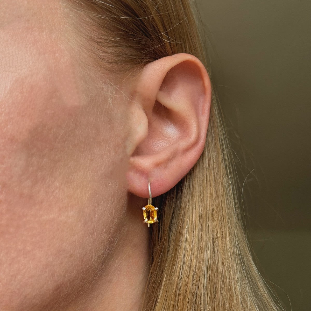 citrinas ¦ sidabriniai auskarai su ovaliu citrino akmeniu