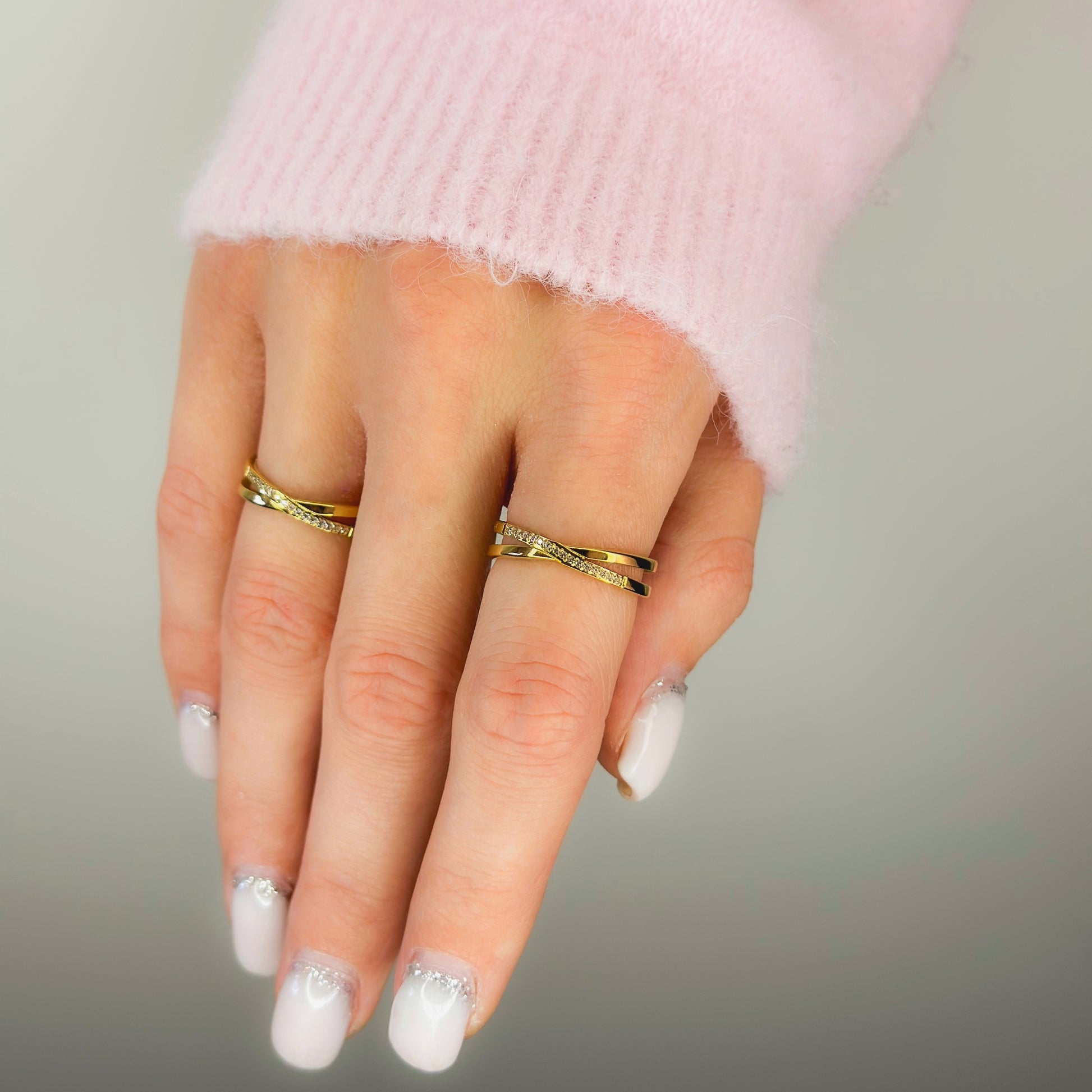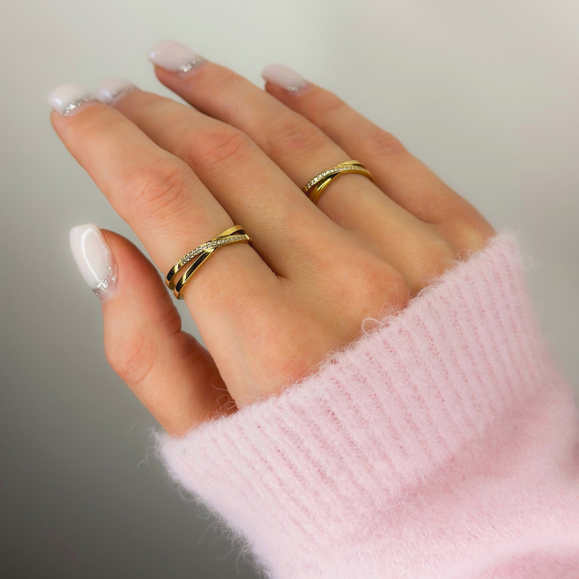 Dvigubas auksuotas žiedas su cirkoniais