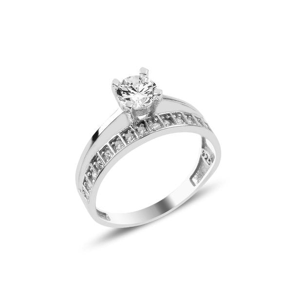 Dvigubas sujungtas sidabrinis rodžiuotas žiedas su cirkoniais