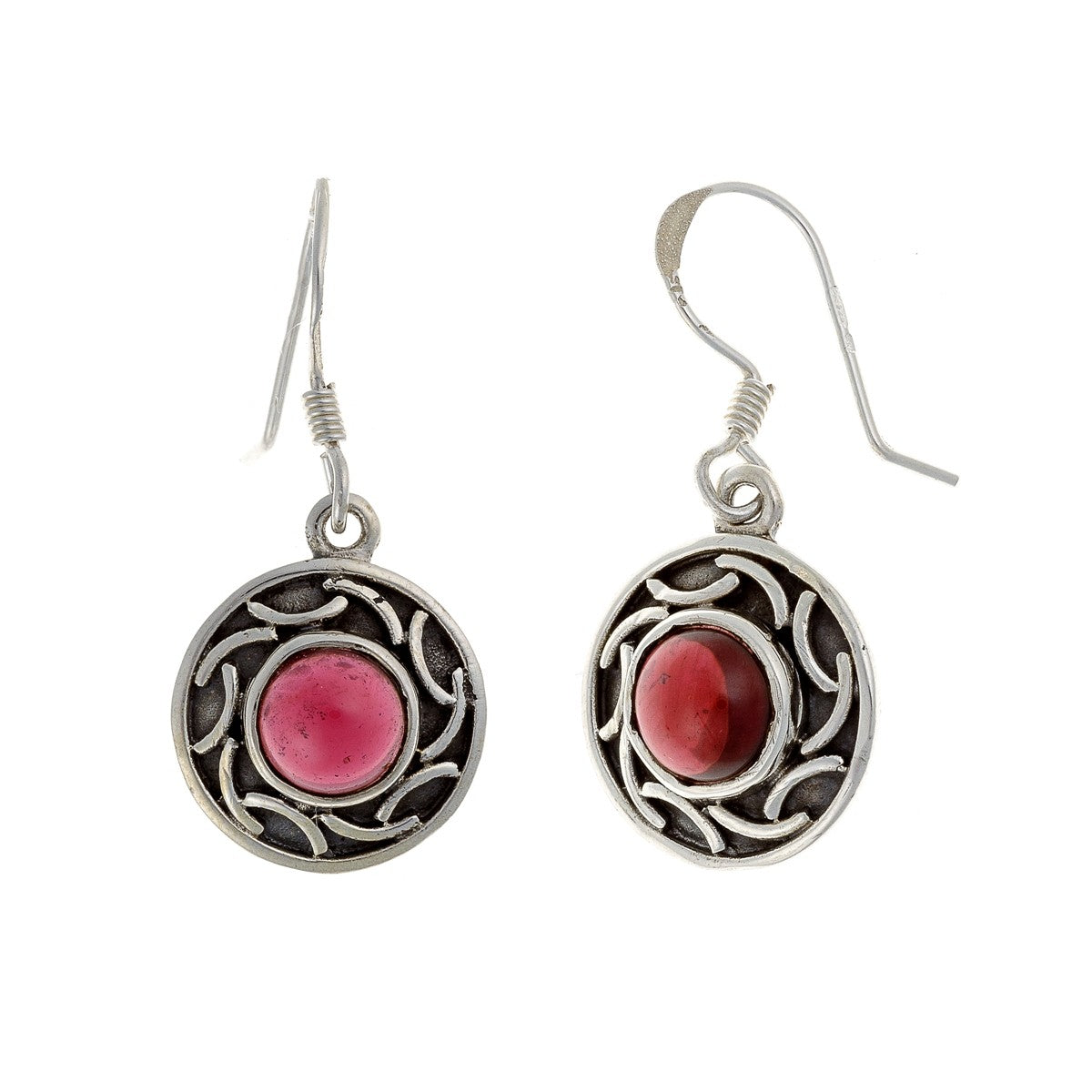 granatas ¦ sidabriniai apvalūs kabantys auskarai su granatu